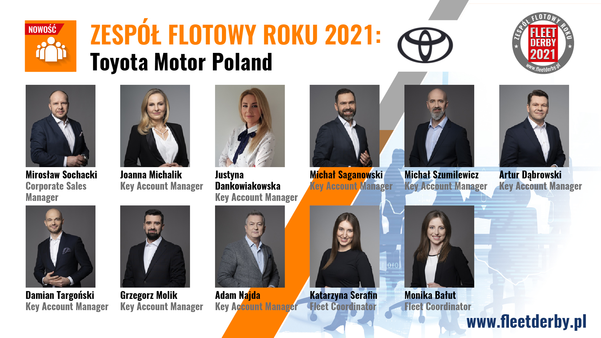 Zwieńczeniem jubileuszowej, dziesiątej edycji ogólnopolskiego plebiscytu flotowego Fleet Derby, była uroczysta gala wręczenia statuetek, która odbyła się 17 czerwca 2021r. w restauracji Warszawa Wschodnia by Mateusz Gessler. Głosowanie w plebiscycie trwało pół roku, od stycznia do czerwca br., za pośrednictwem strony internetowej www.fleetderby.pl. Organizatorem gali i plebiscytu była redakcja miesięcznika „Fleet. Auto w firmie”.
