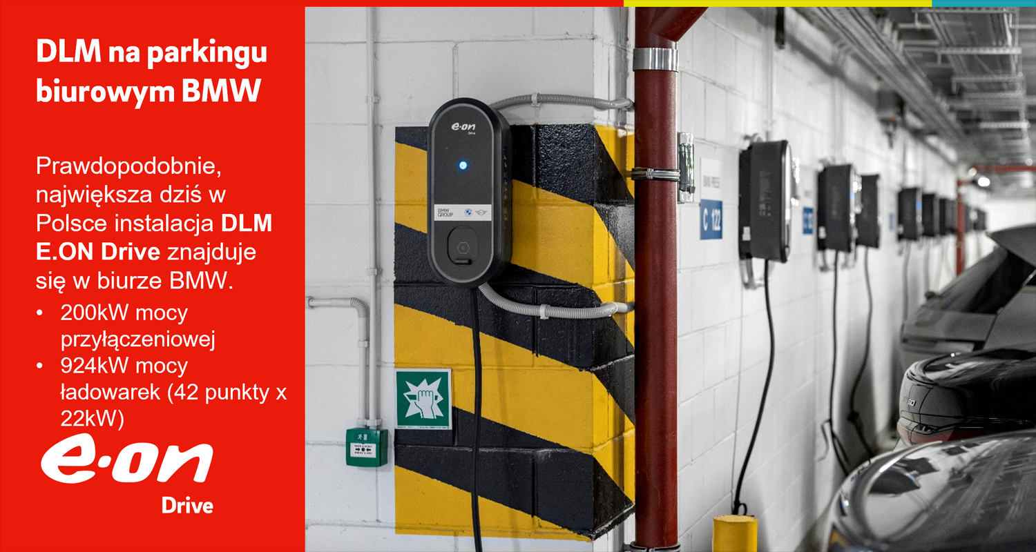 Dynamic Load Management (DLM) od E.ON Drive to najnowocześniejsze w Europie rozwiązanie do zarządzania ładowaniem na parkingach biurowych.