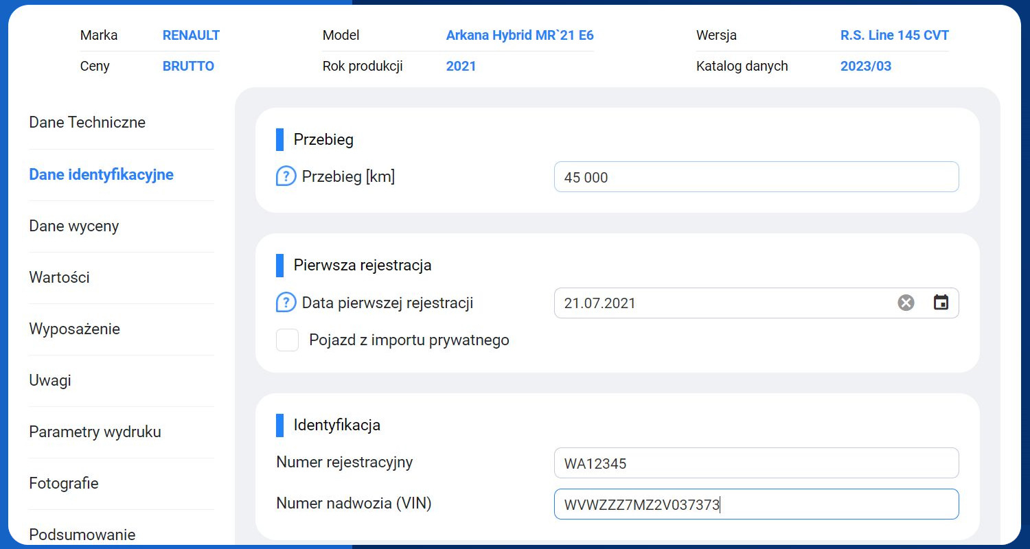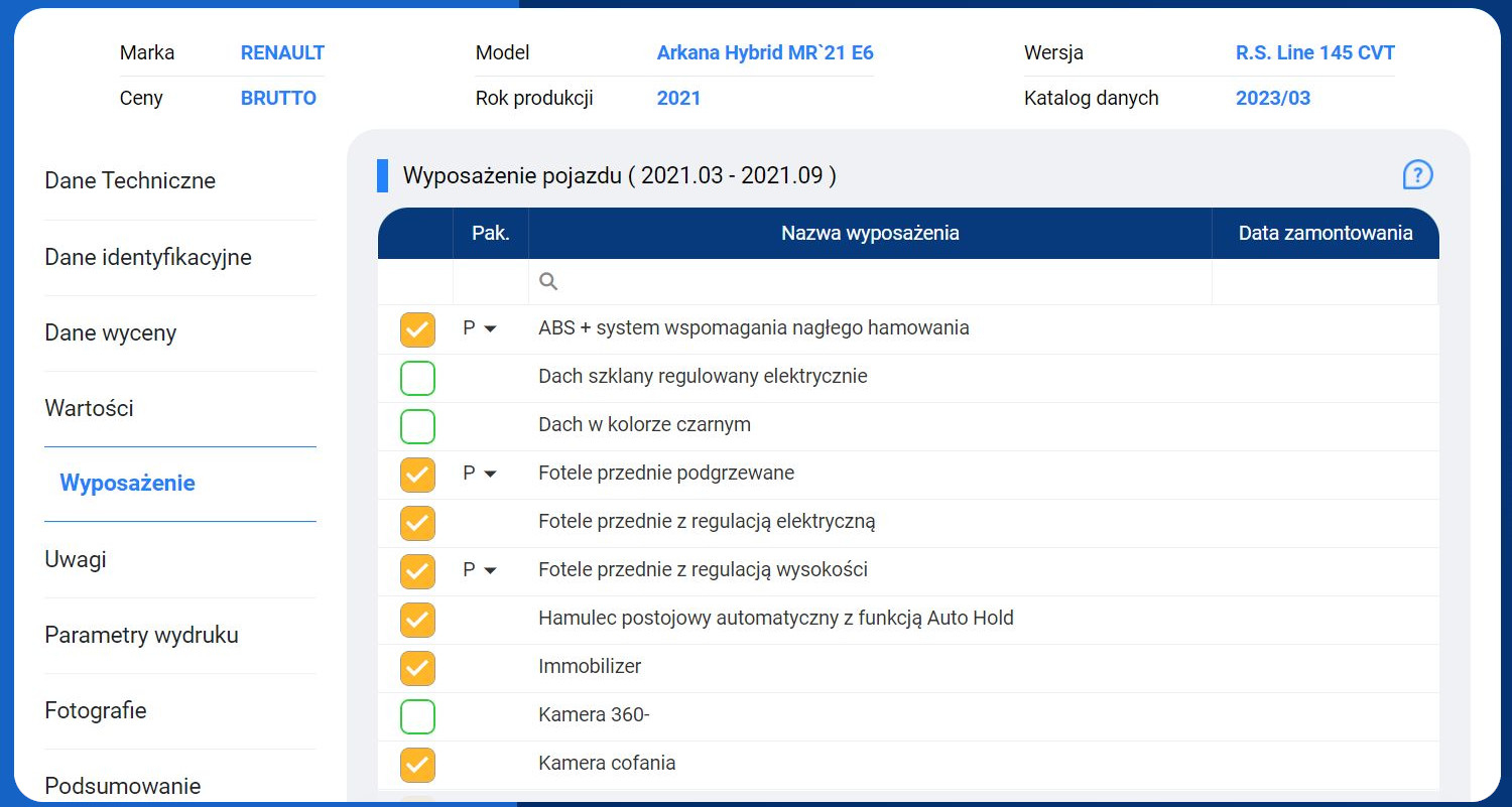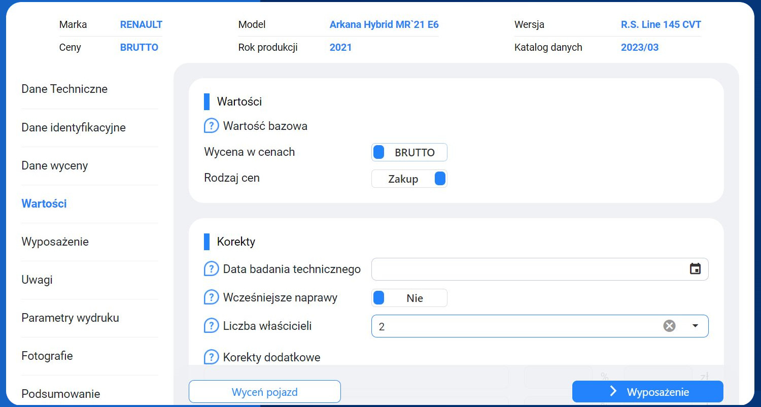 Możliwość zastosowania zróżnicowanych korekt wpływających na wartości pojazdu.
