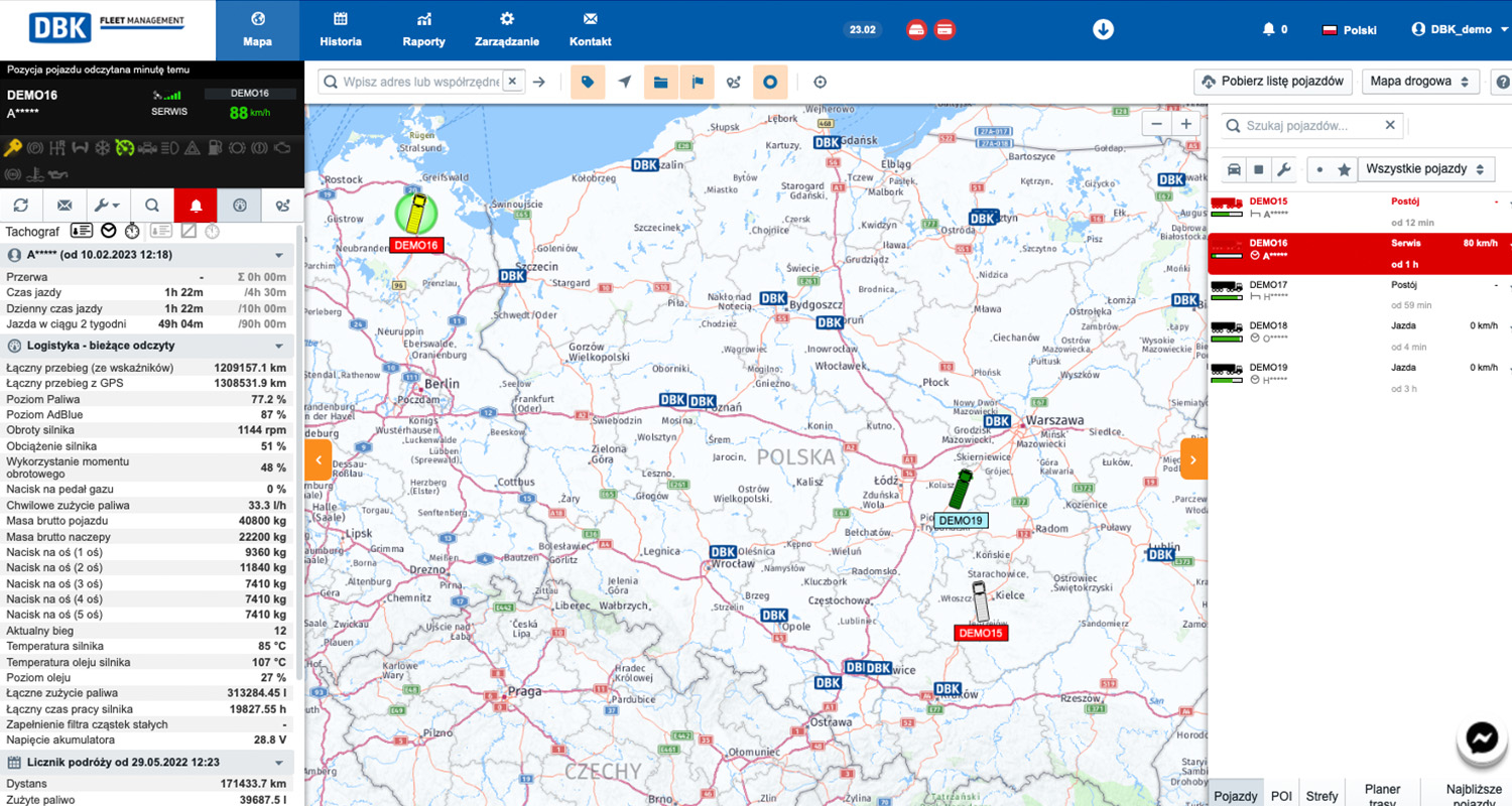 DBK Fleet Management to nowoczesny i wszechstronny system do zarządzania flotą pojazdów oraz pracą kierowców. To jedno z najbardziej zaawansowanych technologicznie rozwiązań telematycznych na rynku. Gwarantuje dostęp do danych w każdej chwili z poziomu przeglądarki na dowolnym urządzeniu lub aplikacji mobilnej (ta wkrótce będzie dostępna w wersji dla kierowców!).